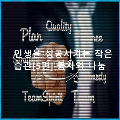 인생을 성공시키는 작은 습관[5편] 봉사와 나눔 알아 보았습니다. 성공을 바라시는 분께 조금이라도 도움이 될수있기를...