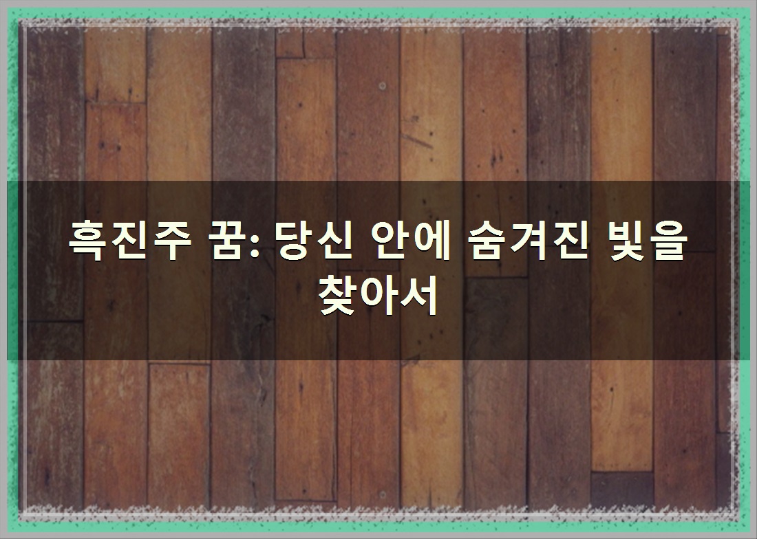 알아보자 :: 흑진주 꿈: 당신 안에 숨겨진 빛을 찾아서
