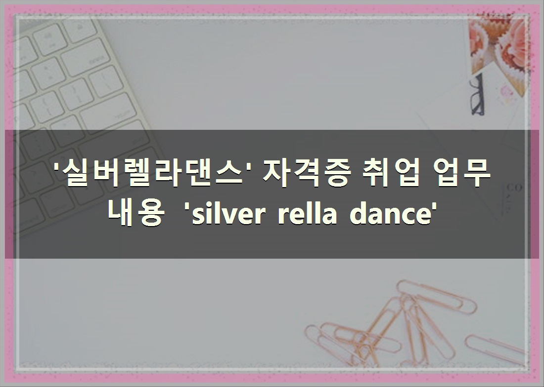 소개드린 내용은 '실버렐라댄스' 자격증 취업 업무 내용 'silver rella dance' 입니다. 도움이 되었길바랍니다.