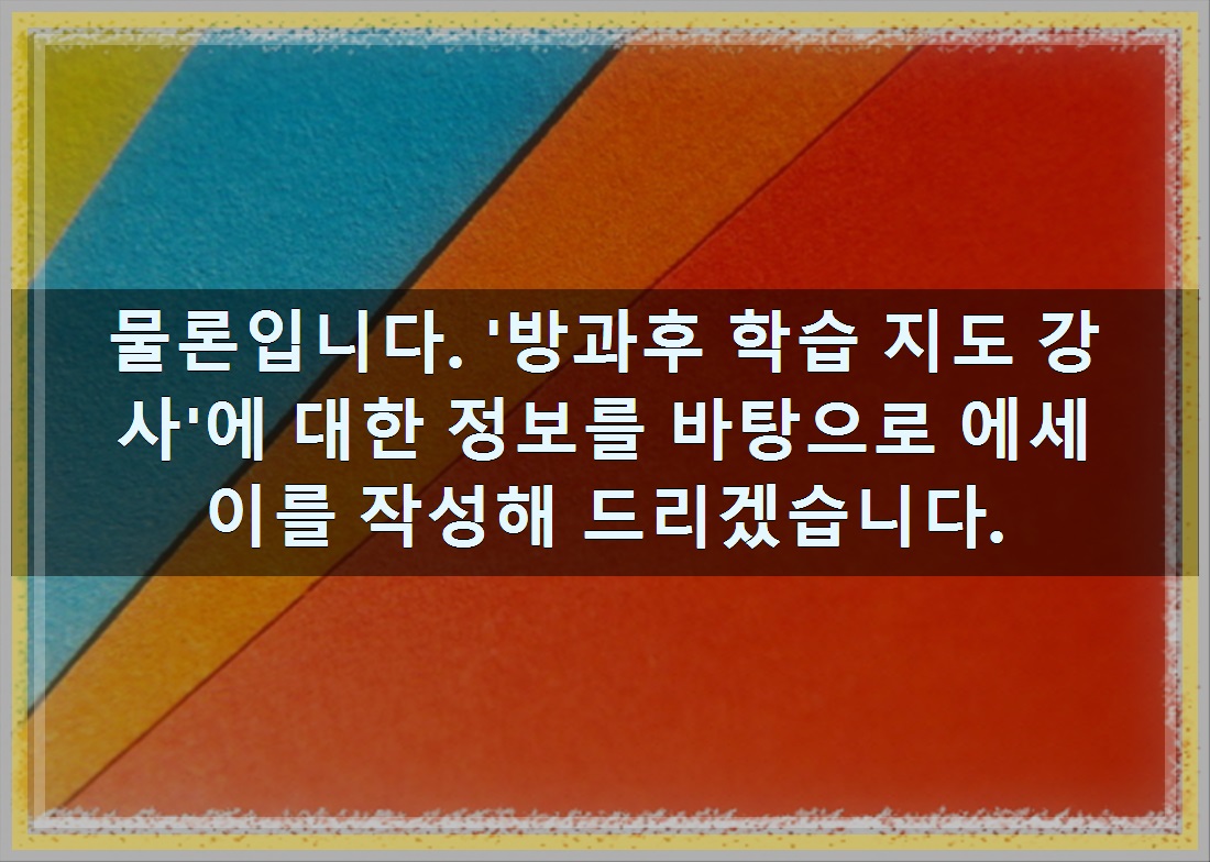 정리드린 글은 물론입니다. '방과후 학습 지도 강사'에 대한 정보를 바탕으로 에세이를 작성해 드리겠습니다. 알아보았습니다. 보시는 분들께 조금이라도 도움이 되셨길 바랍니다.