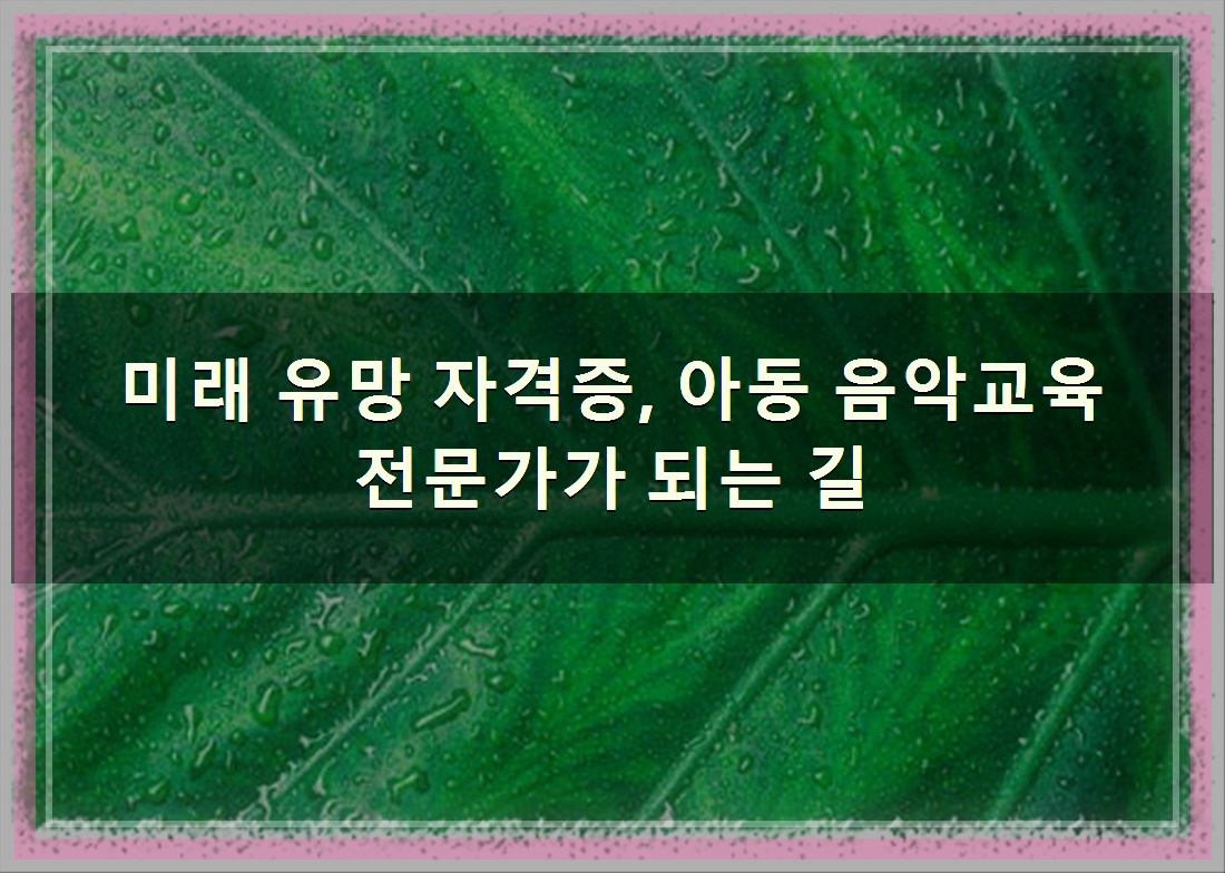 정리드린 정보는 미래 유망 자격증, 아동 음악교육 전문가가 되는 길 입니다. 이해에 도움이 되셨길 바랍니다.