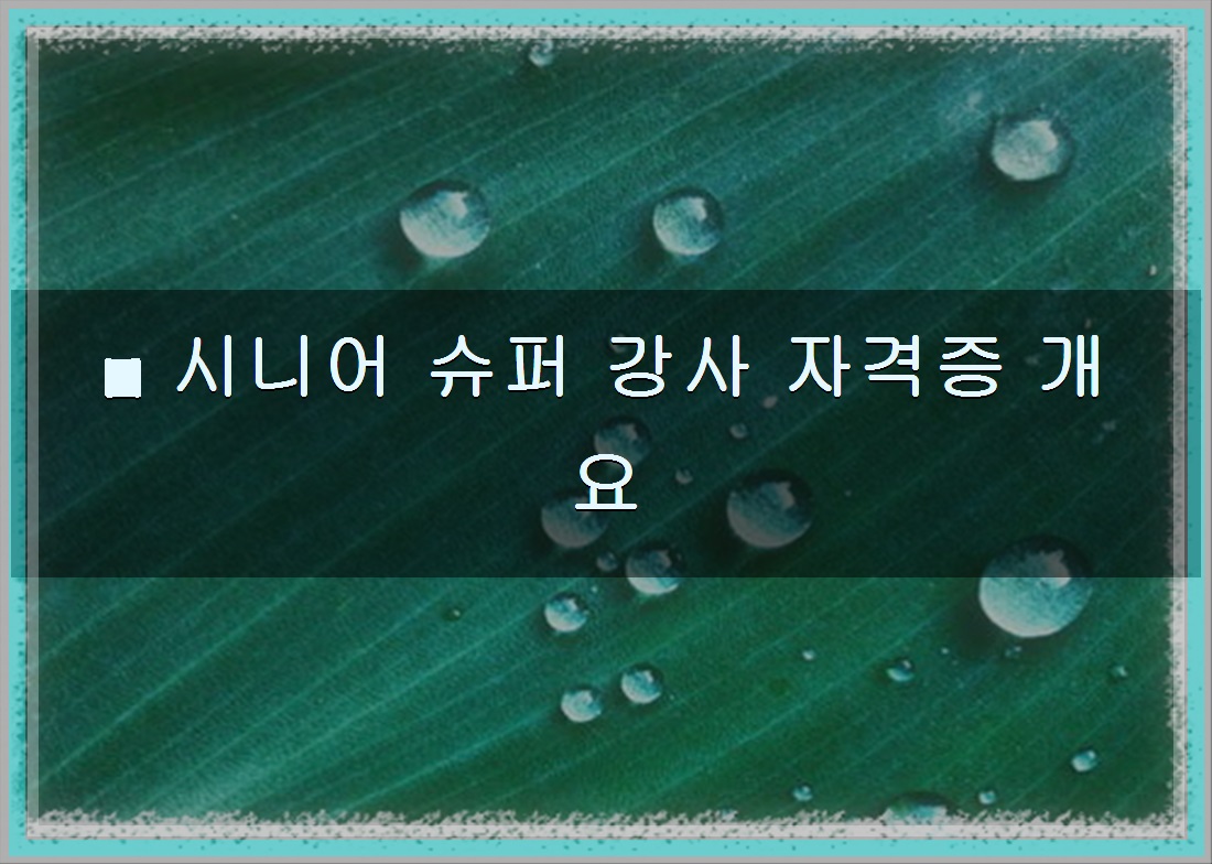 정리드린 내용은 베이비부머 세대를 위한 유망 자격증, 시니어 슈퍼 강사 자격증의 핵심 이였습니다. 상기 글이 좋은 정보가 되었길바랍니다.