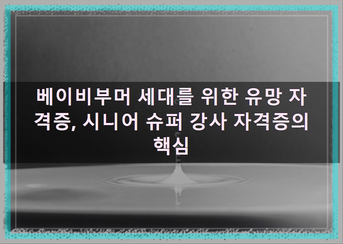 새로운 인생 2막을 준비하는 당신에게, 어떤 길이 가장 빛나는 선택이 될까요? 은퇴 후에도 활기찬 삶을 꿈꾸는 베이비부머 세대에게 시니어 슈퍼 강사 자격증은 단순히 새로운 직업을 넘어, 보람과 성취감을 안겨줄 훌륭한 기회가 될 수 있습니다. 이 글에서는 민간 유망 자격증으로 손꼽히는 시니어 슈퍼 강사 자격증에 대해 상세히 알아보고, 왜 지금 이 시점에 이 자격증이 주목받는지 살펴보겠습니다. 그럼 아래 바로 확인해 보실까여?