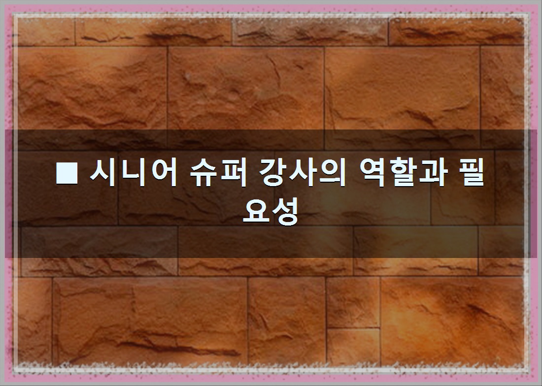 ■ 시니어 슈퍼 강사의 역할과 필요성