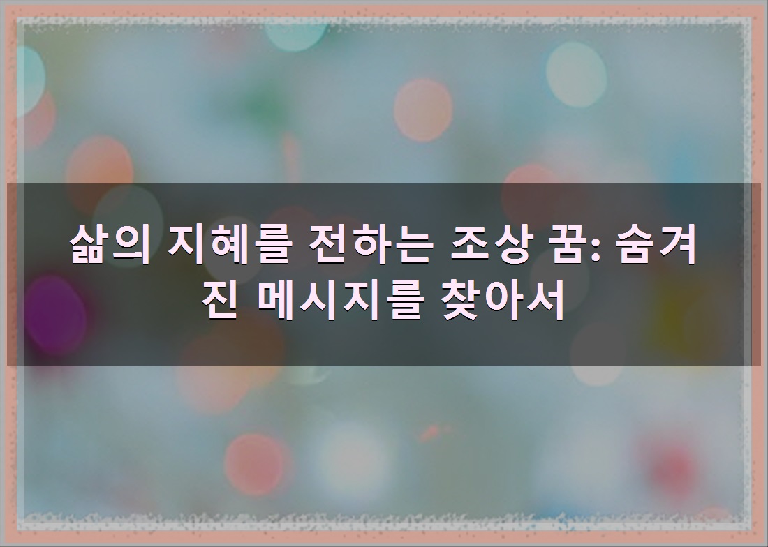 알아보자 :: 삶의 지혜를 전하는 조상 꿈: 숨겨진 메시지를 찾아서